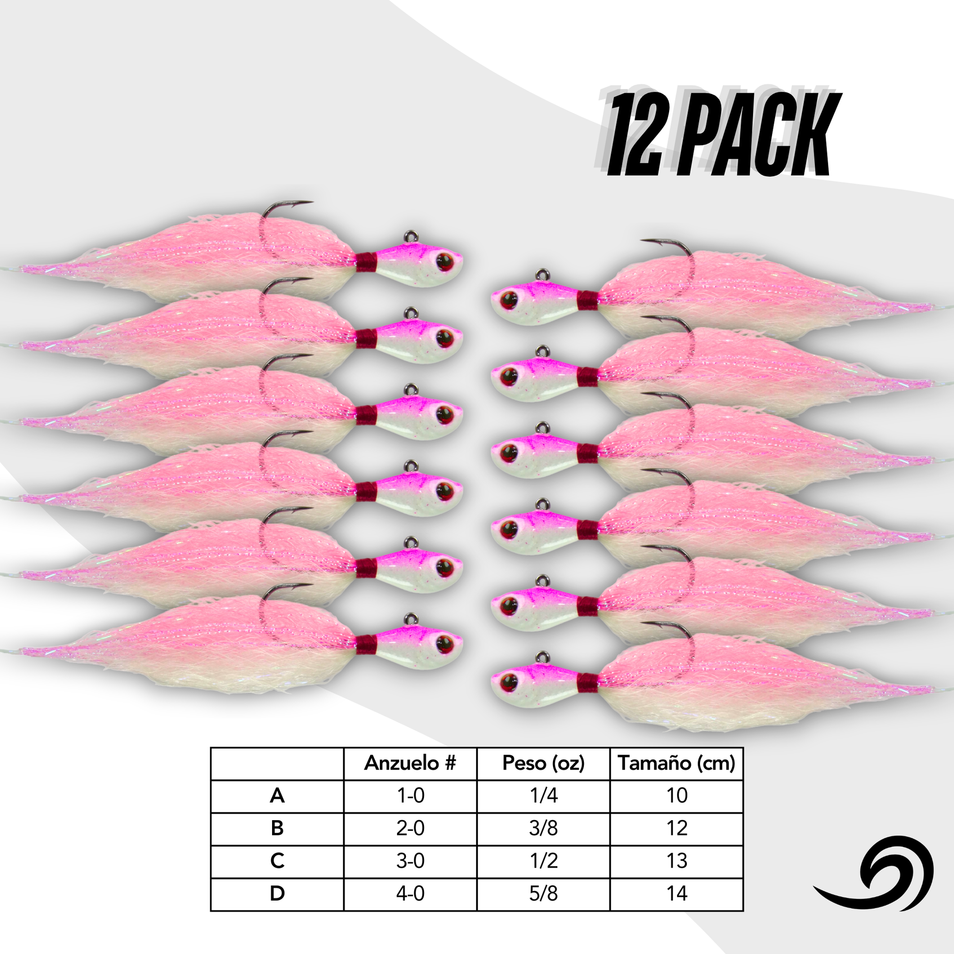 La máxima expresión del rosa en pesca deportiva. Este pack de 12 unidades está diseñado para quienes buscan cubrir cada rincón del agua con un señuelo irresistible.