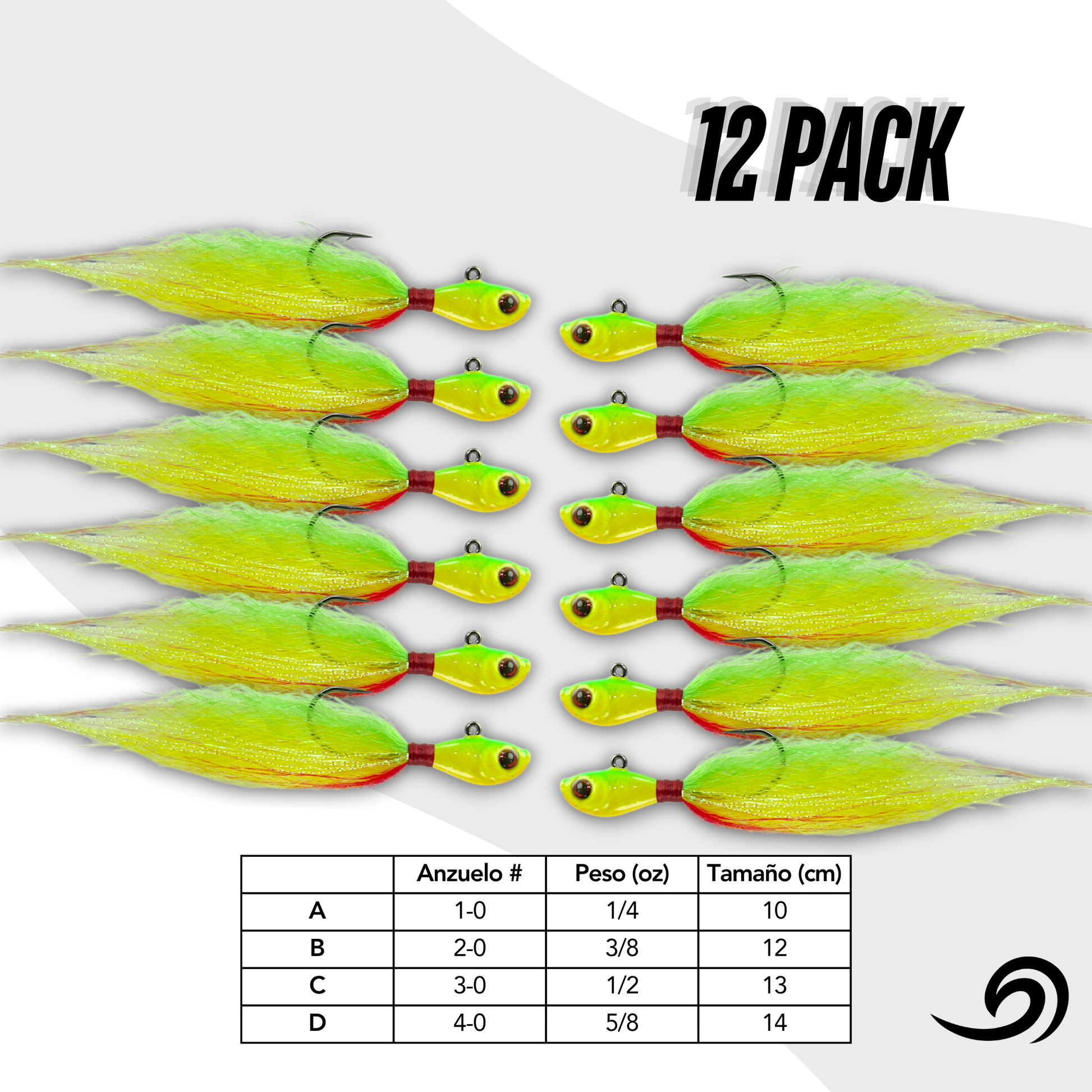 Lleva el show completo a tus aventuras de pesca con este pack de 12 unidades del Carnival. Con colores llamativos y tamaños variados, te asegurará éxito en cualquier escenario.
