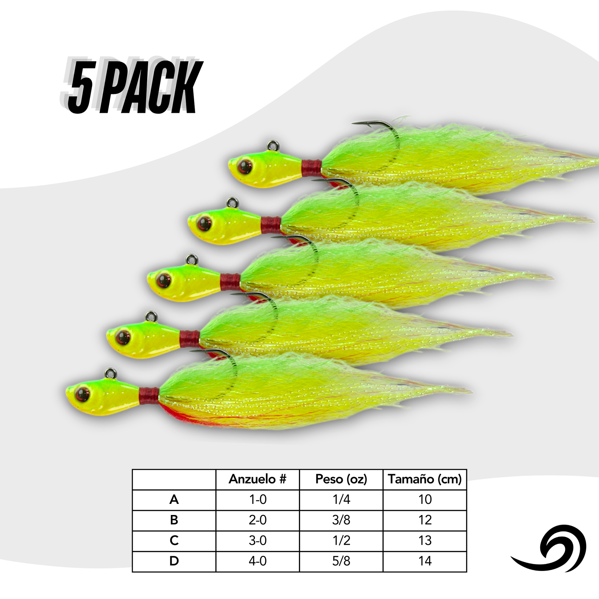 Este pack de 5 unidades del Carnival es perfecto para probar el poder de este diseño en aguas turbias y corrientes. Su combinación de colores es irresistible para tucunarés, dorados y más.